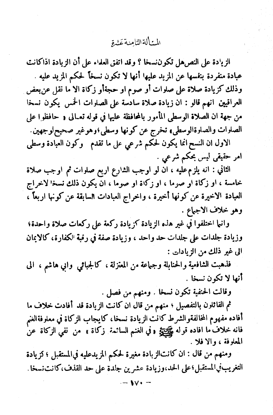 [الْمَسْأَلَةُ الثَّامِنَةَ عَشْرَةَ الزِّيَادَةُ عَلَى النَّصِّ هَلْ تَكُونُ نَسْخًا]