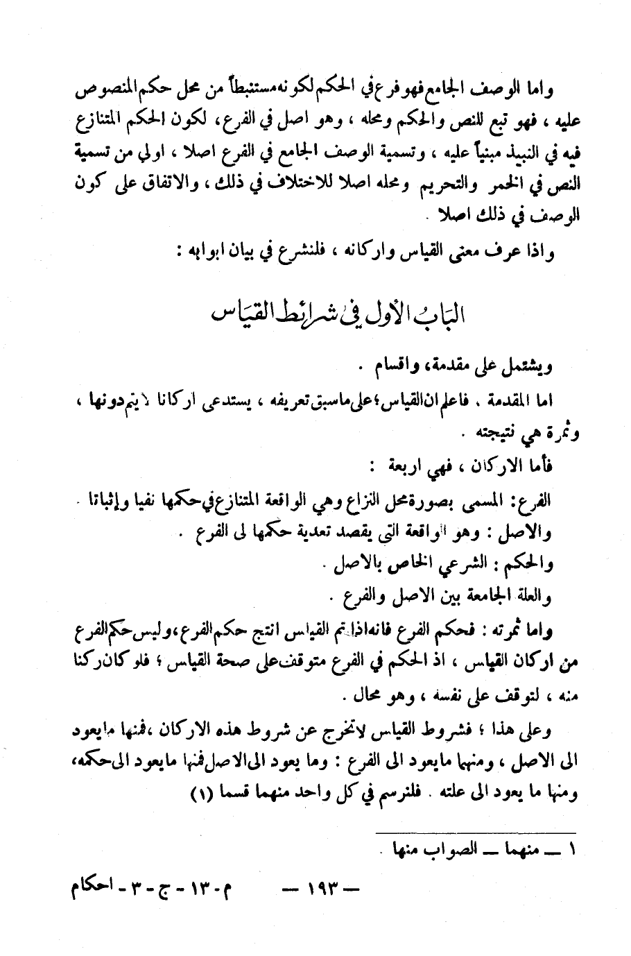 الْبَابُ الْأَوَّلُ: فِي شَرَائِطِ الْقِيَاسِ