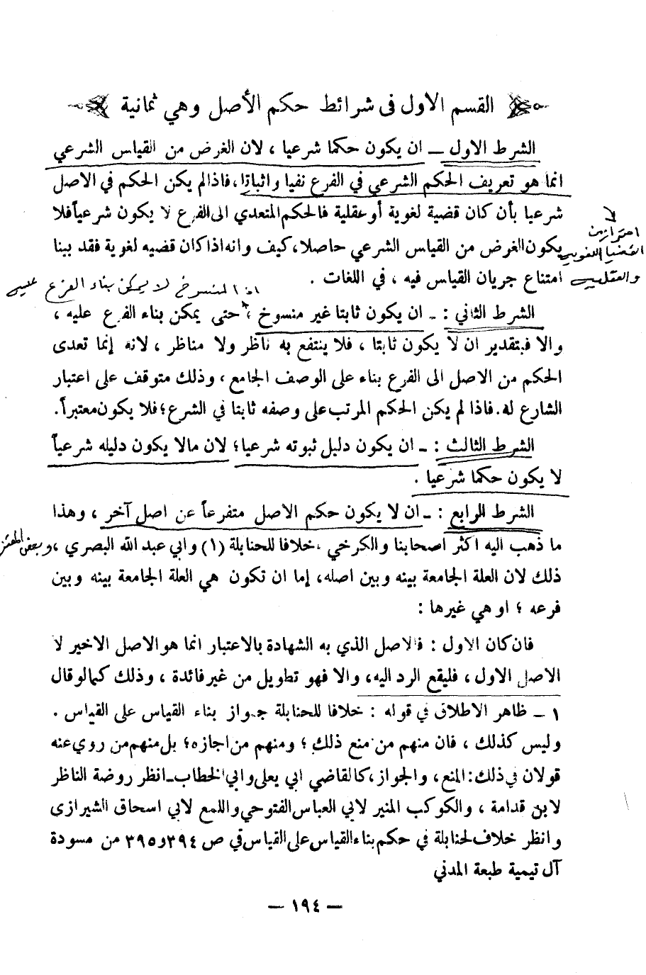 [الْقِسْمُ الْأَوَّلُ فِي شَرَائِطِ حُكْمِ الْأَصْلِ]