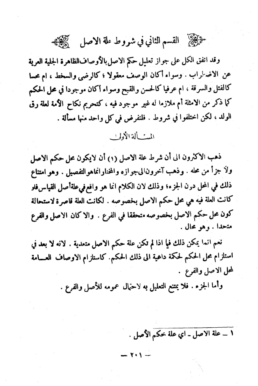 [الْمَسْأَلَةُ الْأُولَى شَرْطَ عِلَّةِ الْأَصْلِ]