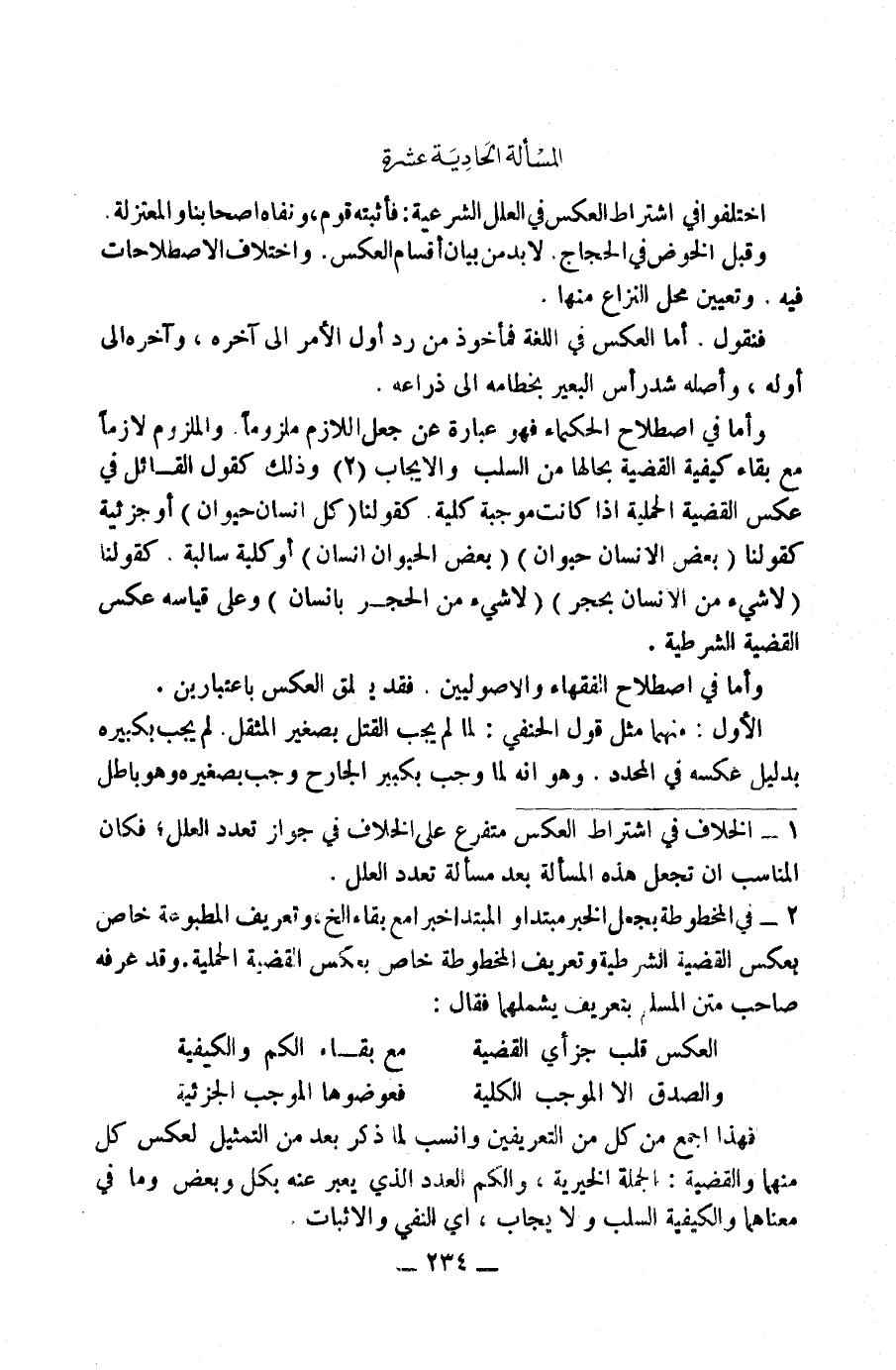 (٢) فِي الْمَخْطُوطَةِ بِجَعْلِ الْخَبَرِ مُبْتَدَأً وَالْمُبْتَدَأِ خَبَرًا مَعَ بَقَاءِ. . . إِلَخْ وَتَعْرِيفُ الْمَطْبُوعَةِ خَاصٌّ بِعَكْسِ الْقَضِيَّةِ الشَّرْطِيَّةِ، وَتَعْرِيفُ الْمَخْطُوطَةِ خَاصٌّ بِعَكْسِ الْقَضِيَّةِ الْحَمْلِيَّةِ، وَقَدْ عَرَّفَهُ صَاحِبُ مَتْنِ الْمُسْلِمِ بِتَعْرِيفٍ يَشْمَلُهُمَا فَقَالَ: