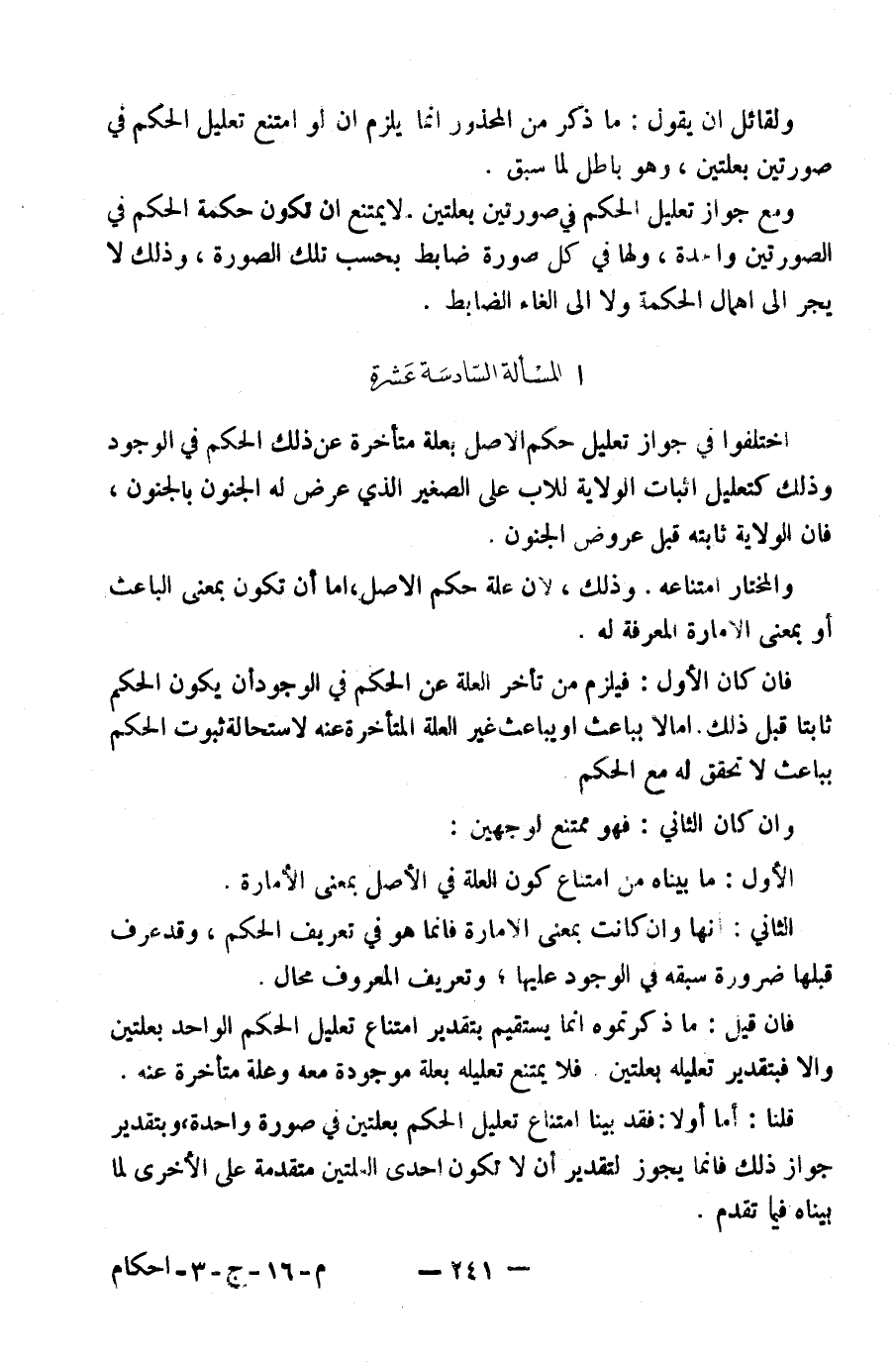 الْمَسْأَلَةُ السَّادِسَةَ عَشْرَةَ