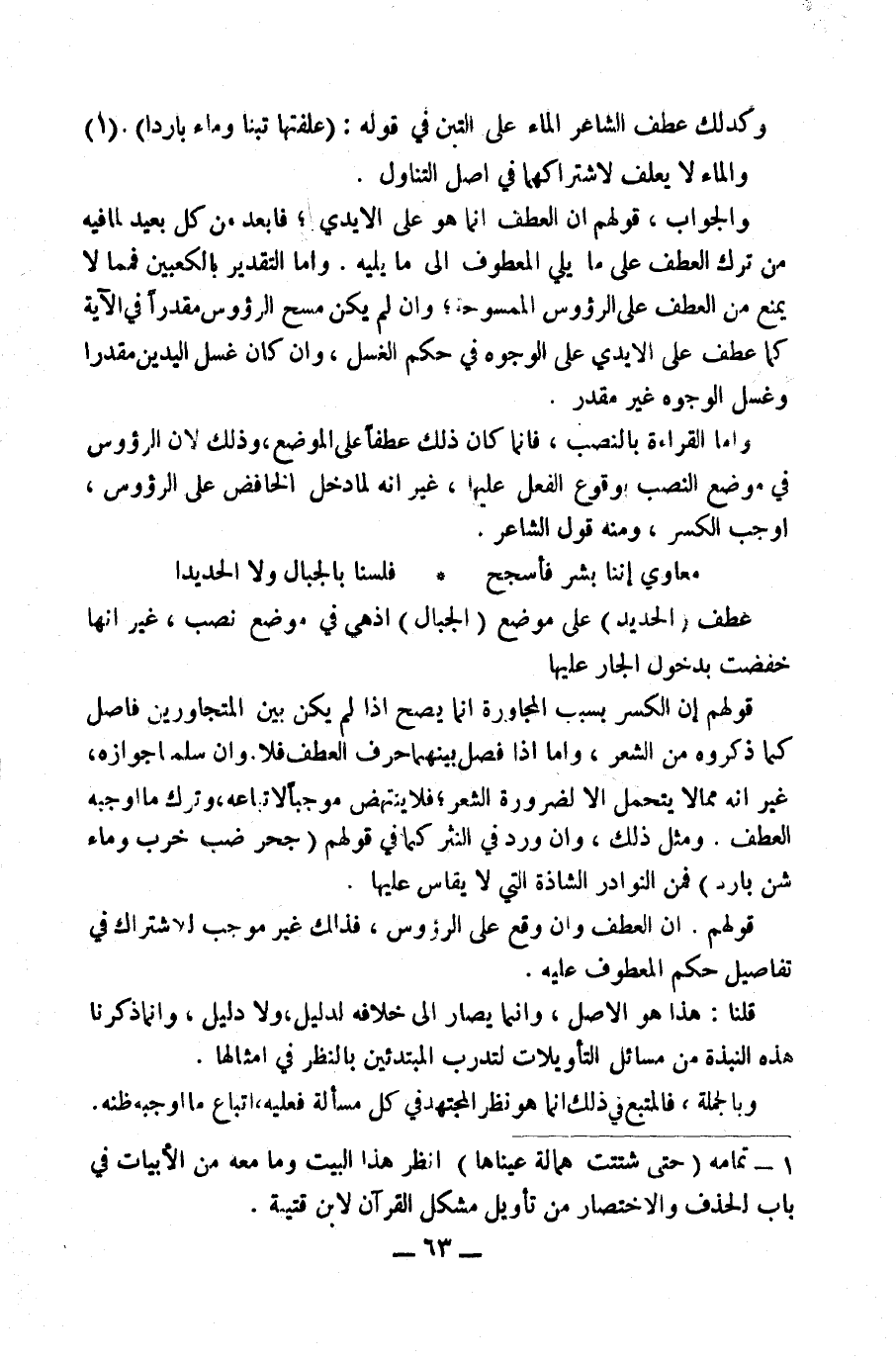 وَإِنْ سَلَّمْنَا جَوَازَهُ، غَيْرَ أَنَّهُ مِمَّا لَا يُتَحَمَّلُ إِلَّا لِضَرُورَةِ الشِّعْرِ فَلَا يَنْتَهِضُ مُوجِبًا لِاتِّبَاعِهِ، وَتَرْكِ مَا أَوْجَبَهُ الْعَطْفُ.