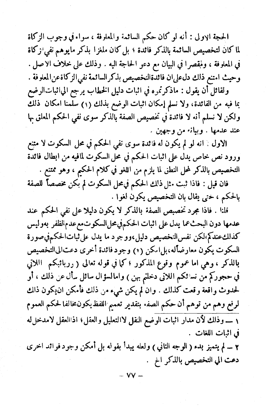 وَبَيَانُهُ مِنْ وَجْهَيْنِ: الْأَوَّلُ: أَنَّهُ لَوْ لَمْ يَكُنْ لَهُ فَائِدَةٌ سِوَى نَفْيِ الْحُكْمِ فِي مَحَلِّ السُّكُوتِ لَامْتَنَعَ وُرُودُ نَصٍّ خَاصٍّ يَدُلُّ عَلَى إِثْبَاتِ الْحُكْمِ فِي مَحَلِّ السُّكُوتِ لِمَا فِيهِ مِنْ إِبْطَالِ فَائِدَةِ التَّخْصِيصِ بِالذِّكْرِ لِمَحَلِّ النُّطْقِ لِمَا يَلْزَمُ مِنَ اللَّغْوِ فِي كَلَامِ الْحَكِيمِ، وَهُوَ مُمْتَنِعٌ.