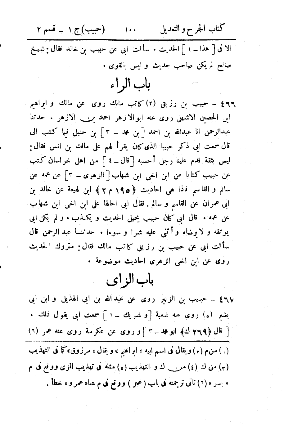 حَدثنا عَبد الرَّحمن، أَخبَرنا عَبد الله بن أَحمد بن محمد بن حَنبل، فيما كَتَبَ إِلَيَّ، قال: سَمِعتُ أَبي ذكر حبيبًا، الذي كان يقرأ لهم على مالك بن أَنس، فقال: ليس بثقة، قدم علينا رجل، أحسبه قَال: من أهل خراسان، كتب عن حبيب كتابًا، عَن ابن أَخي ابن شهاب الزُّهْري، عن عمه، عن سالم، والقاسم، فإذا هي أحاديث ابن لَهيعَة، عن خالد بن أَبي عِمران، عن القاسم، وسالم، فقال أبي: أحالها عَليُّ بن أَخي ابن شهاب، عن عمه.