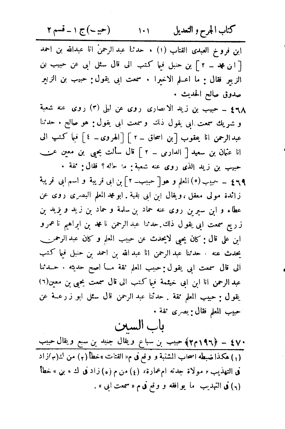 حَدثنا عَبد الرَّحمن، حَدثنا محمد بن إِبراهيم، حَدثنا عَمرو بن عَلي، قال: كان يَحيَى لا يحدث عن حبيب المعلم، وكان عَبد الرَّحمن يحدث عنه.
