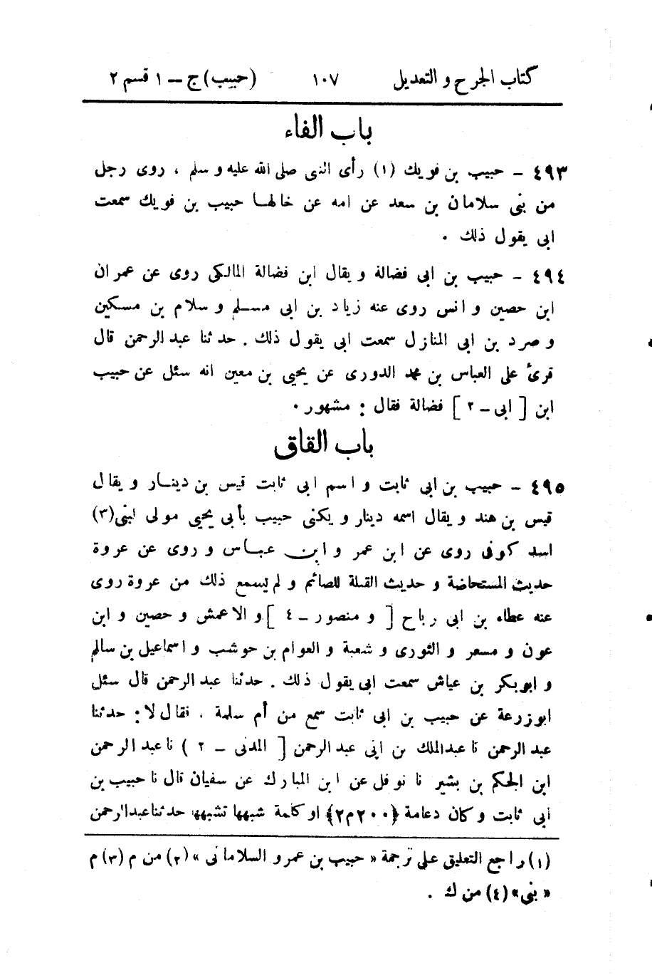 495- حبيب بن أَبي ثابت، واسم أبي ثابت قيس بن دينار، ويُقال: قيس بن هند، ويُقال: اسمه دينار، ويكنى حبيب بأبى يحيى، مولى لِبَني أسد، كُوفيٌّ.
