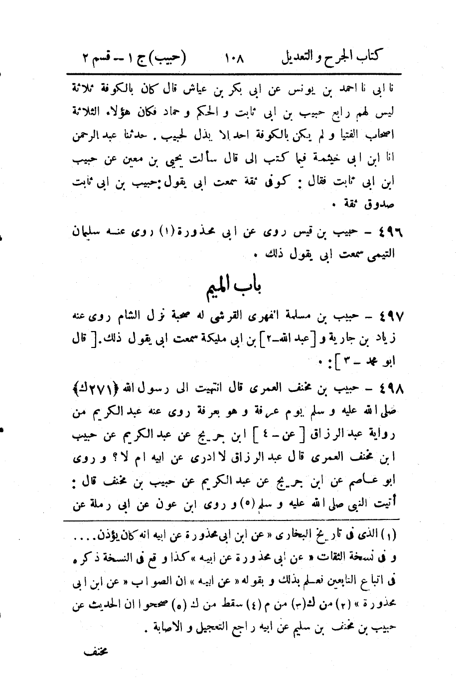 وروى أَبو عاصم، عَن ابن جُرَيج، عن عَبد الكريم، عن حبيب بن مخنف، قال: أتيت النَّبي صَلى الله عَليه وسَلم.
