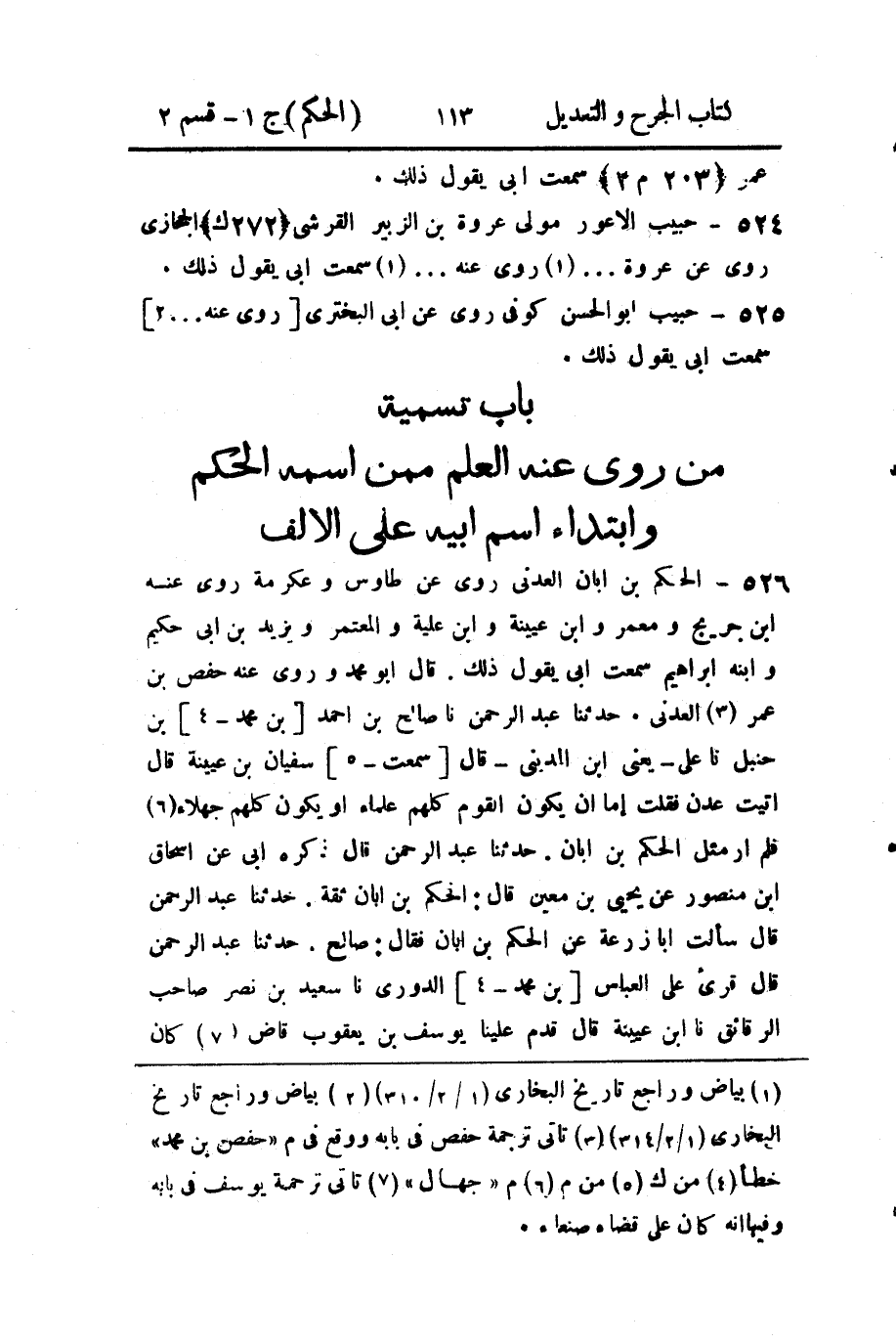 - باب تسمية من رُوي عنه العلم، ممن اسمه الحكم، وابتداء اسم أَبيه على الألف.