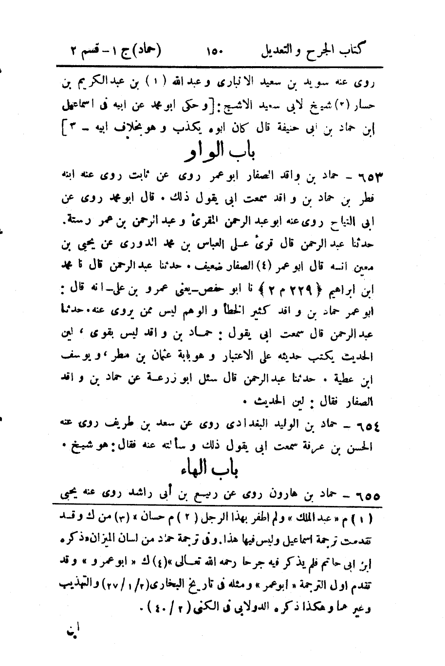 حَدثنا عَبد الرَّحمن، قال: حَدثنا مُحمد بن إِبراهيم، حَدثنا أَبو حفص، يَعني عَمرو بن علي، أَنه قال: أَبو عُمر حماد بن واقد كثير الخطأ والوهم، ليس ممن يروى عنه.