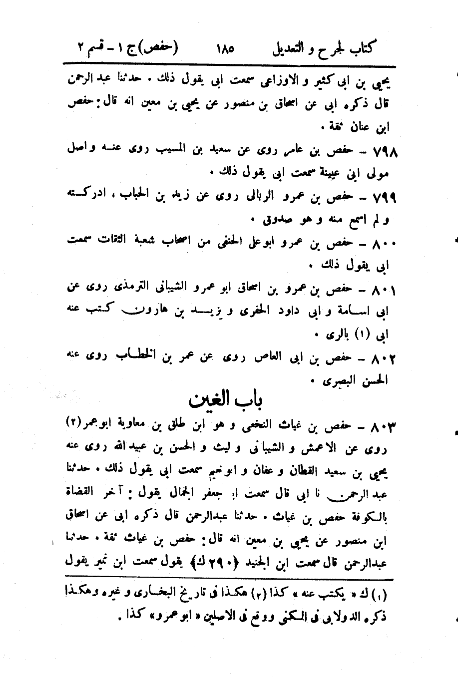 حَدثنا عَبد الرَّحمن، قال: سَمِعتُ ابن الجنيد يقول: سَمِعتُ ابن نُمَير يقول حفص بن غياث كان أعلم بالحديث من ابن إِدريس.
