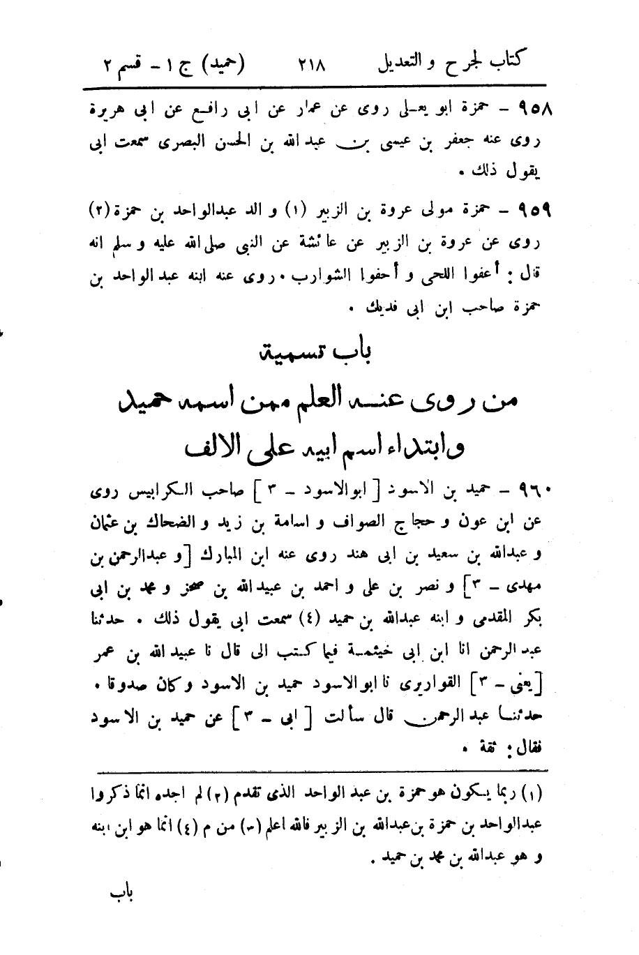 - باب تسمية من رُوي عنه العلم، ممن اسمه حميد، وابتداء اسم أَبيه على الألف.