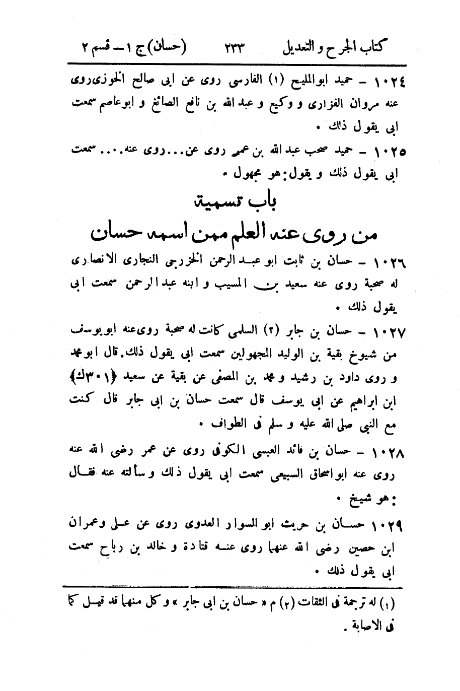 - باب تسمية من رُوي عنه العلم، ممن إسمه حسان.