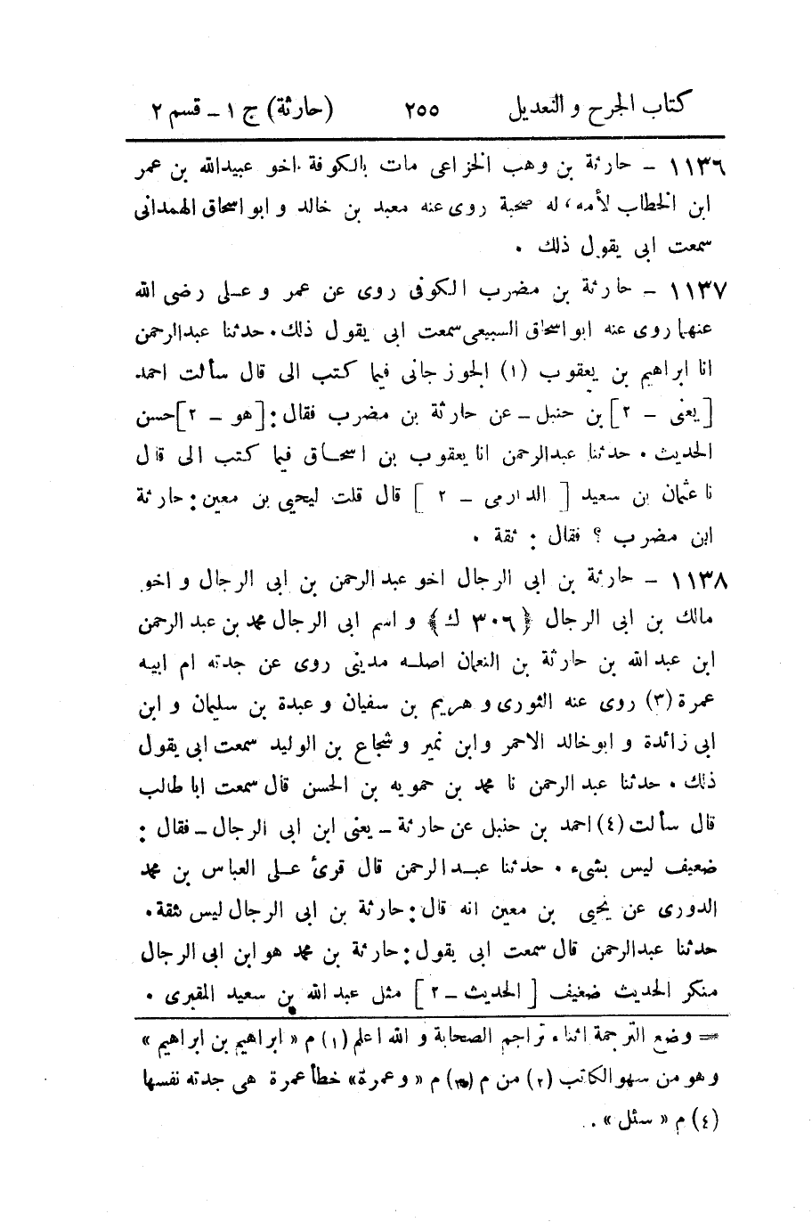 1138- حارثة بن أَبي الرجال أَخو عَبد الرَّحمن بن أَبي الرجال، وأخو مالك بن أَبي الرجال، واسم أبي الرجال محمد بن عَبد الرَّحمن بن عَبد الله بن حارثة بن النعمان، أصله مَدينيٌّ.