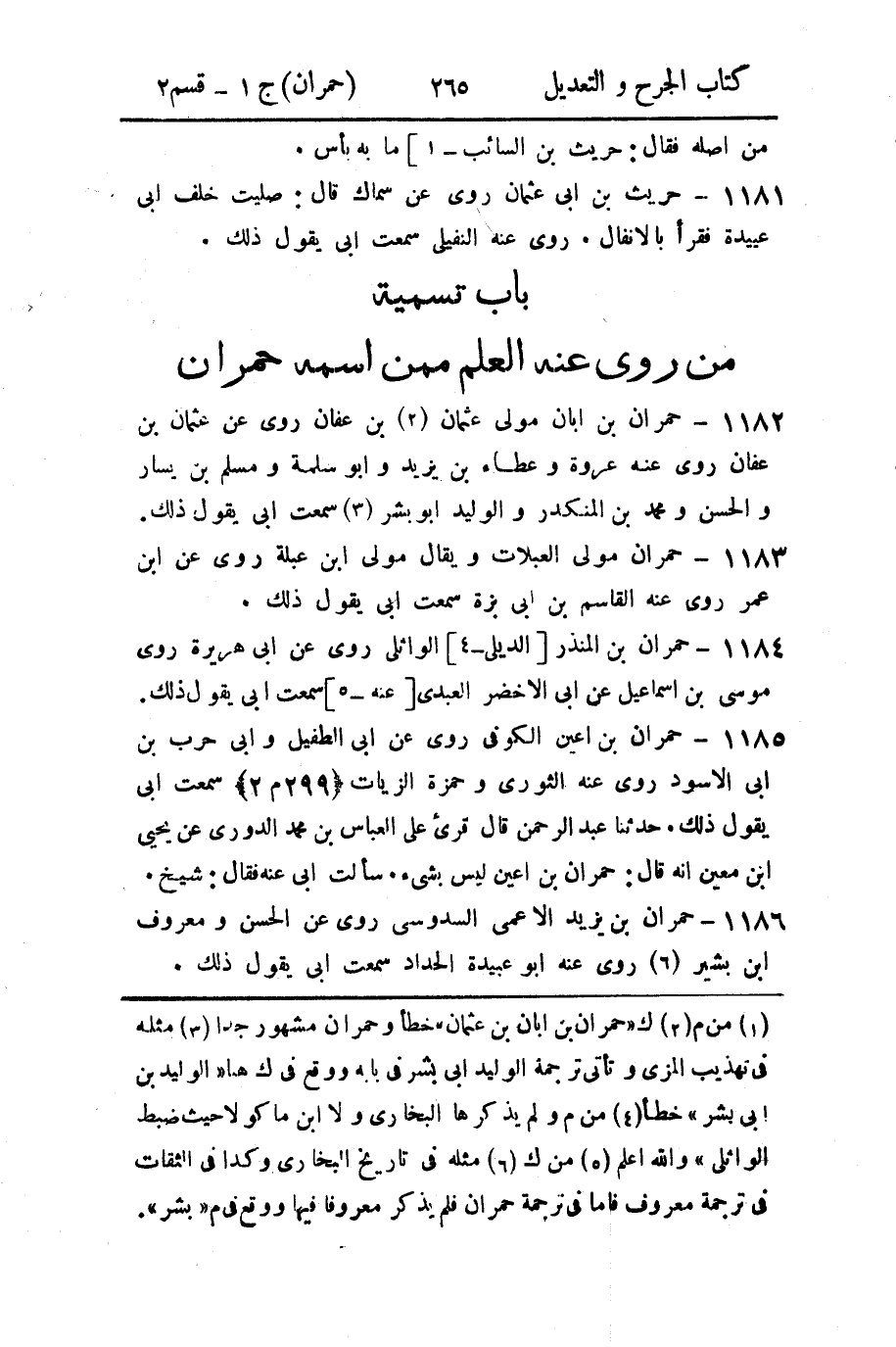 - باب تسمية من رُوي عنه العلم، ممن اسمه حمران.