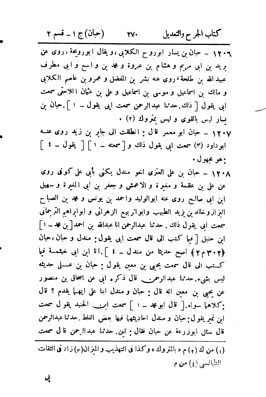 قال أَبو محمد: سمعت ابن الجُنيد يقول: سَمِعتُ ابن نُمَير يقول: حِبان ومندل أحاديثهما فيها بعض الغلط.