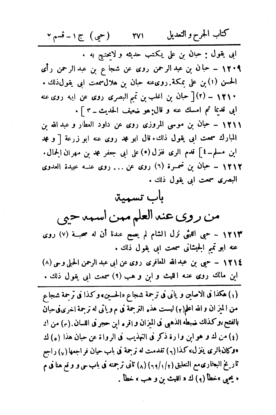 - باب تسمية من رَوَى عَنه: العلم، ممن اسمه حيي.