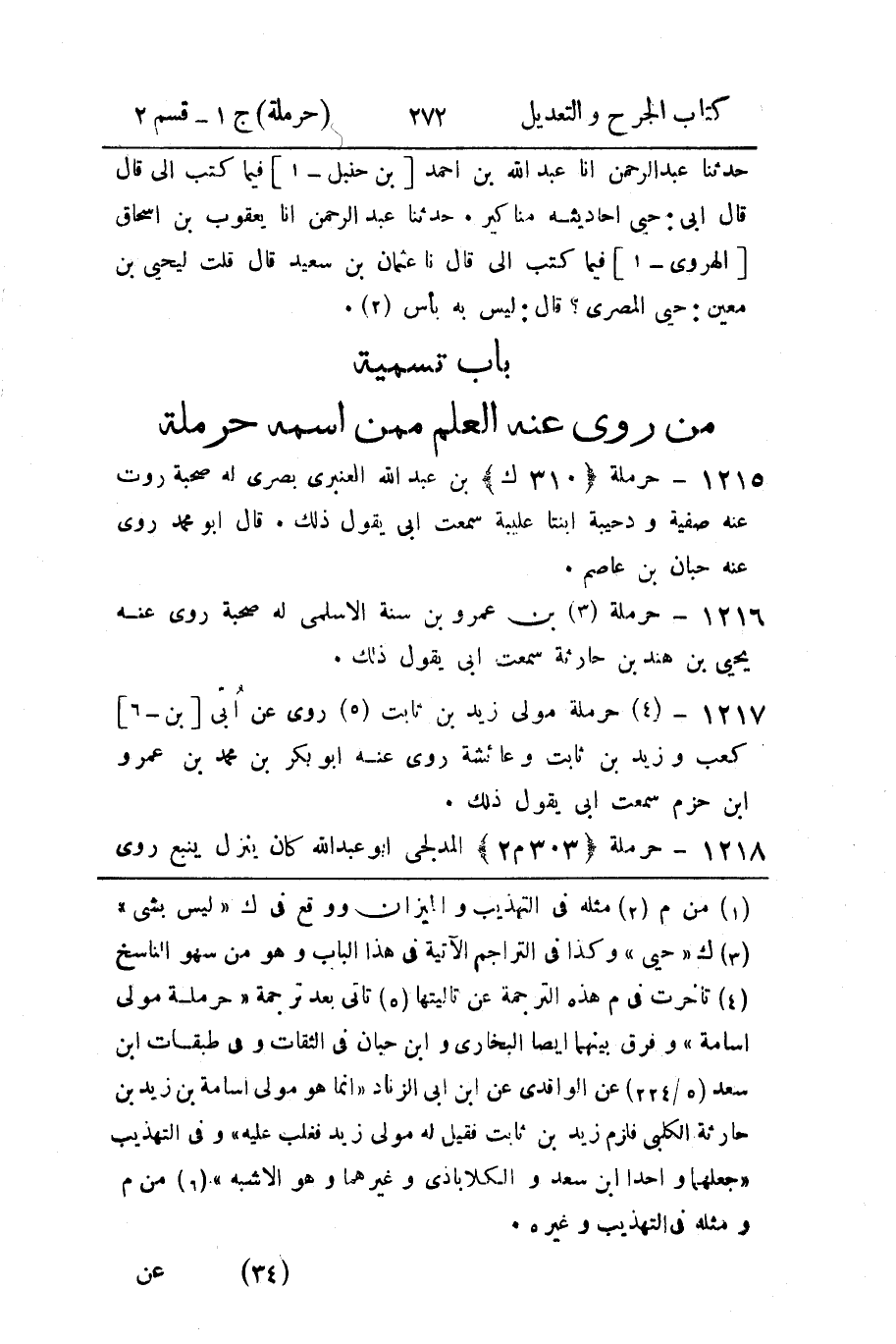 - باب تسمية من رُوي عنه العلم، ممن اسمه حَرملَة.