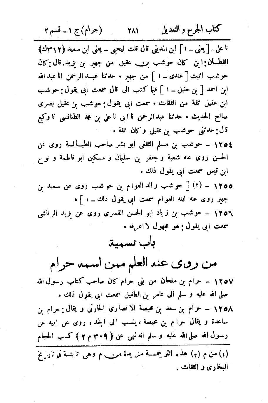 - باب تسمية من رُوي عنه العلم، ممن اسمه حرام.