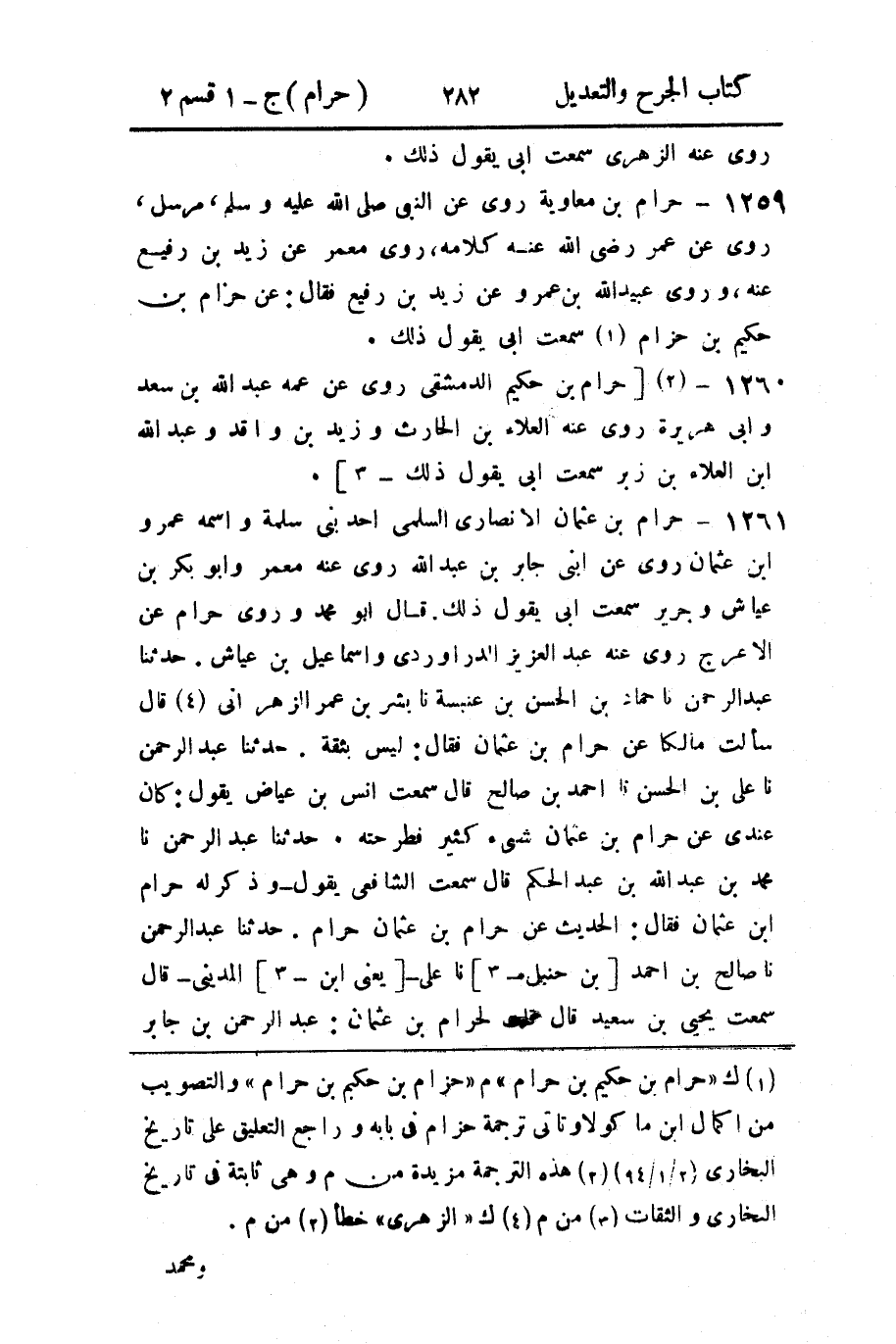 قال أَبو محمد: وَرَوَى حرام عن الأعرج، رَوَى عَنه عَبد العزيز الدَّراوَرْدي، وإِسماعيل بن عَياش.