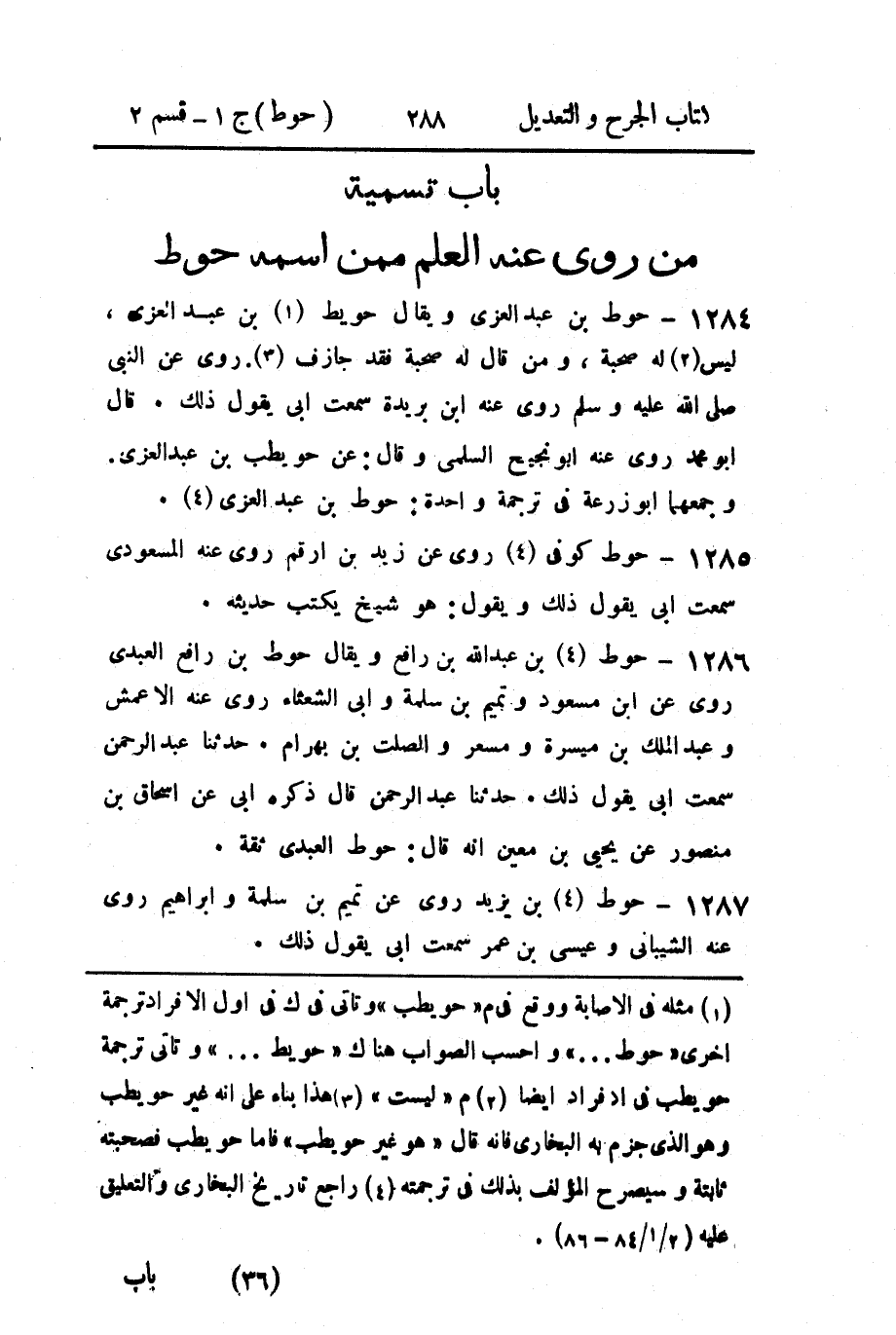 - باب تسمية من رُوي عنه العلم، ممن اسمه حوط.