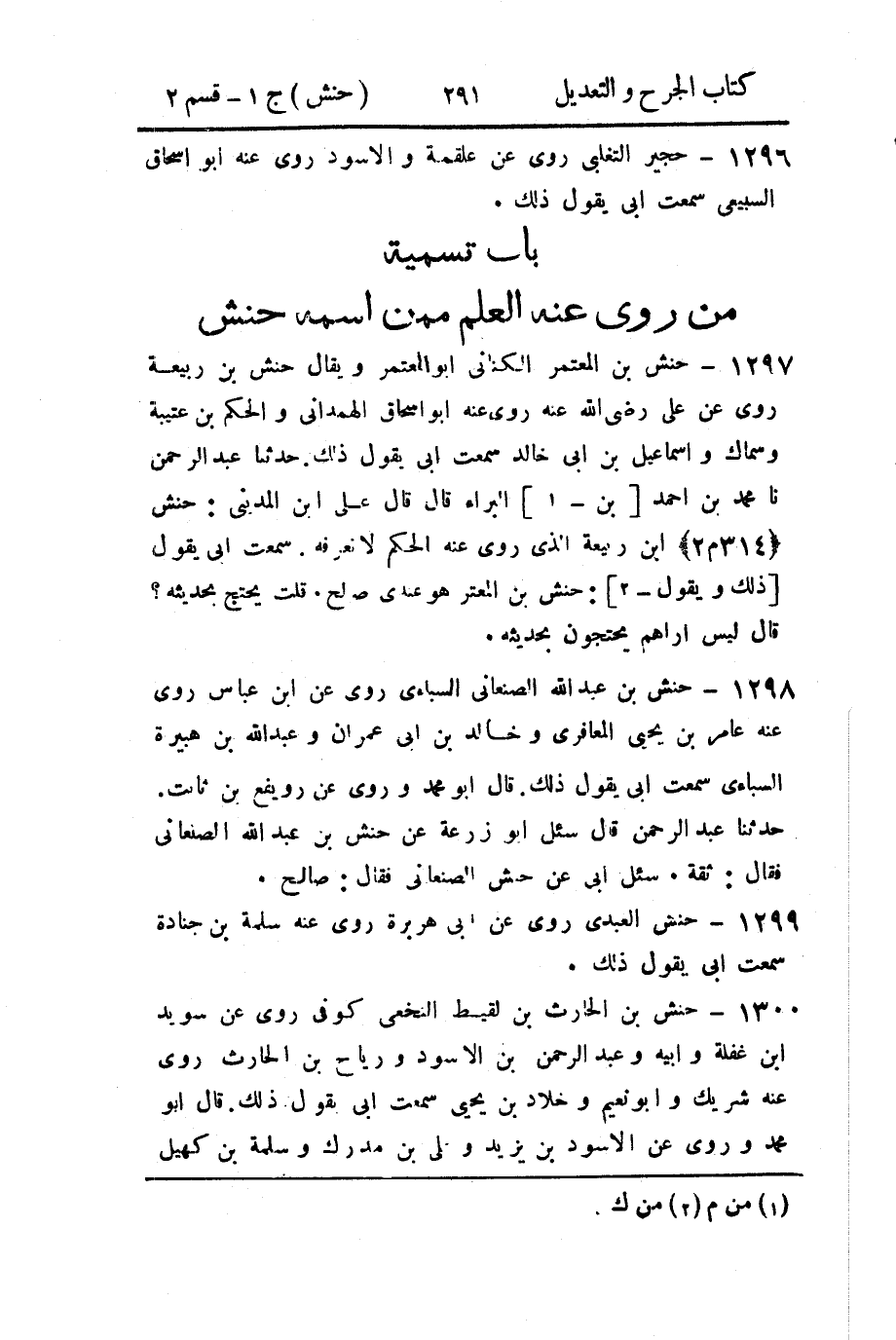 - باب تسمية من رُوي عنه العلم، ممن اسمه حنش.