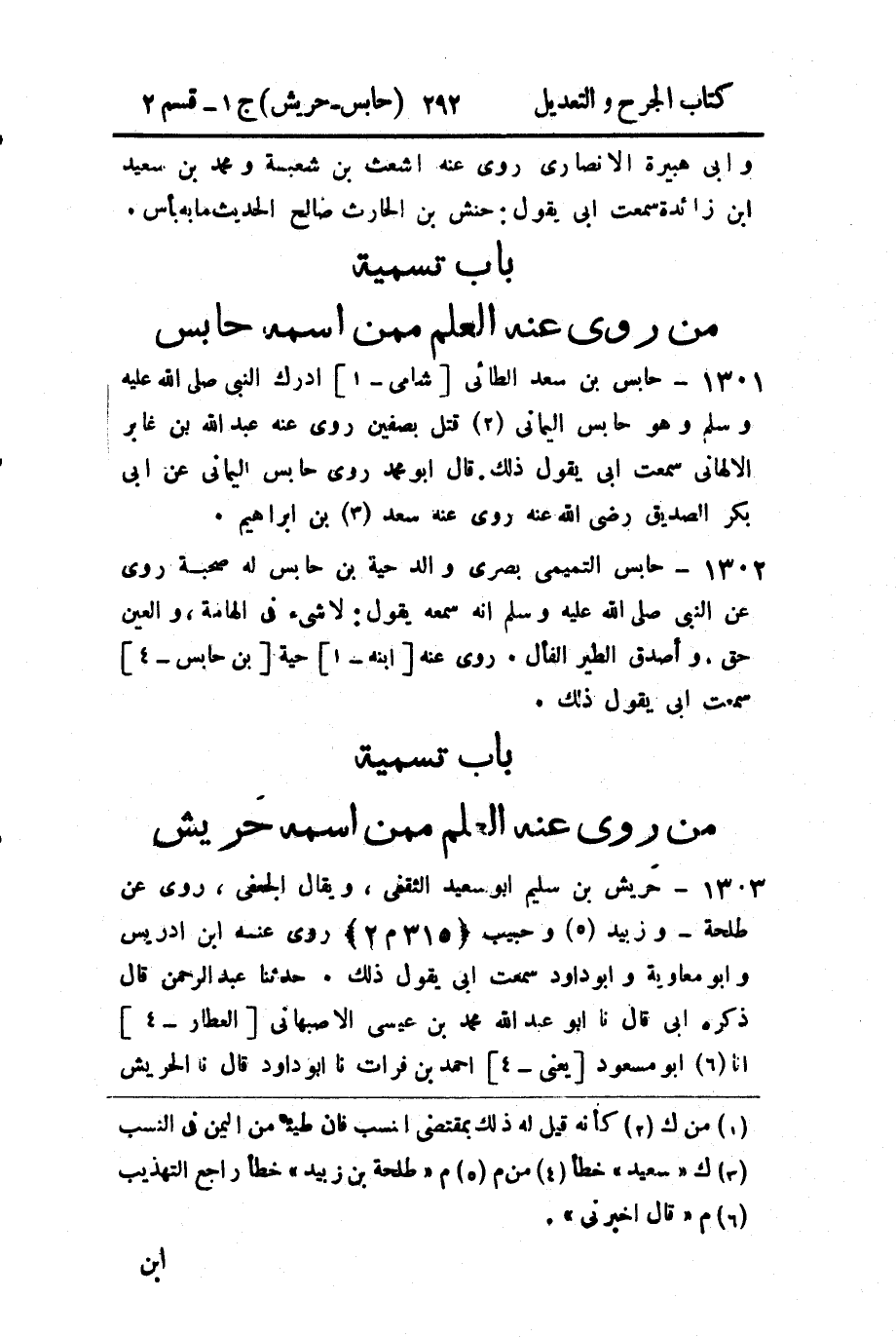 - باب تسمية من رُوي عنه العلم، ممن اسمه حابس.
