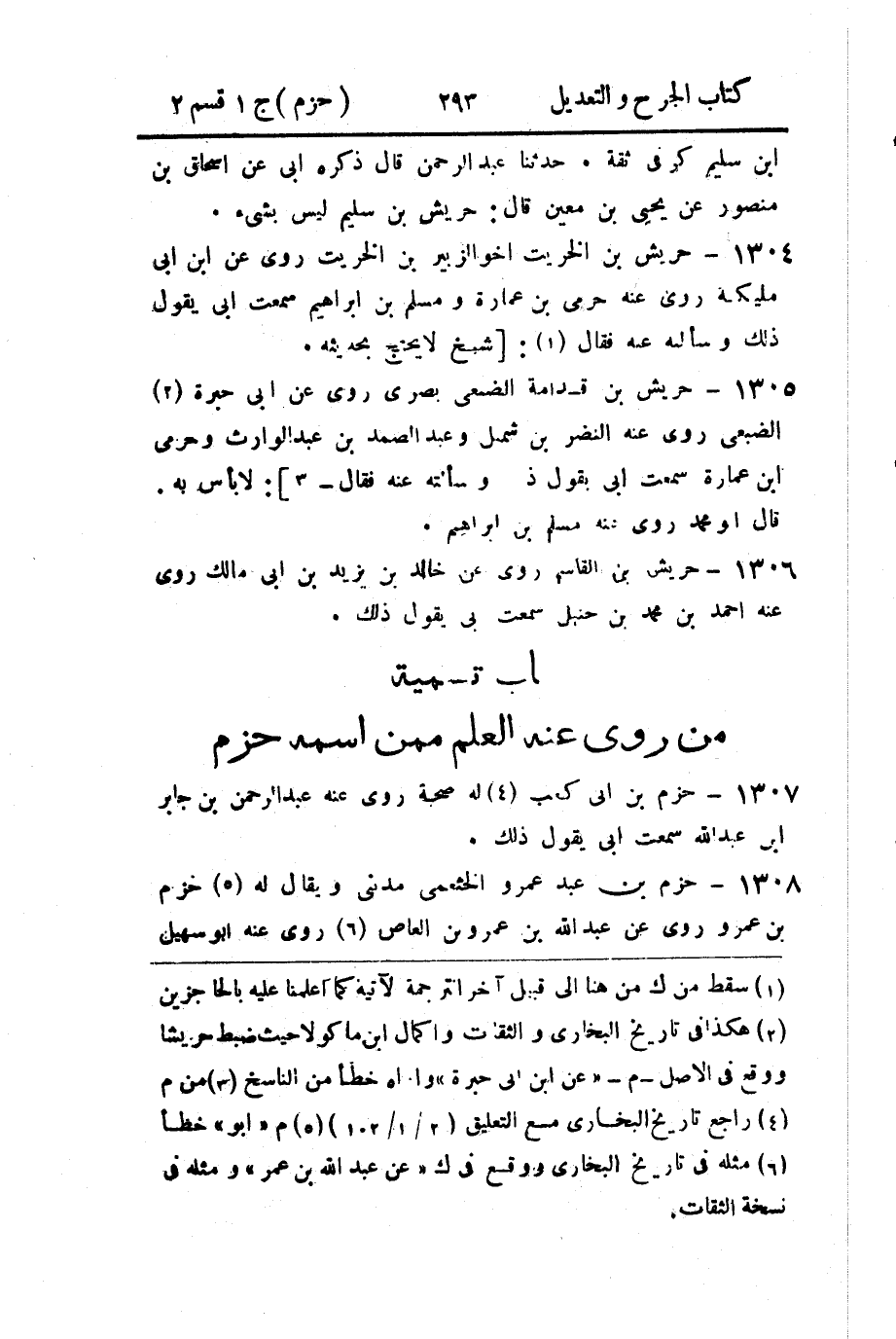 - باب تسمية من رُوي عنه العلم، ممن اسمه حزم.