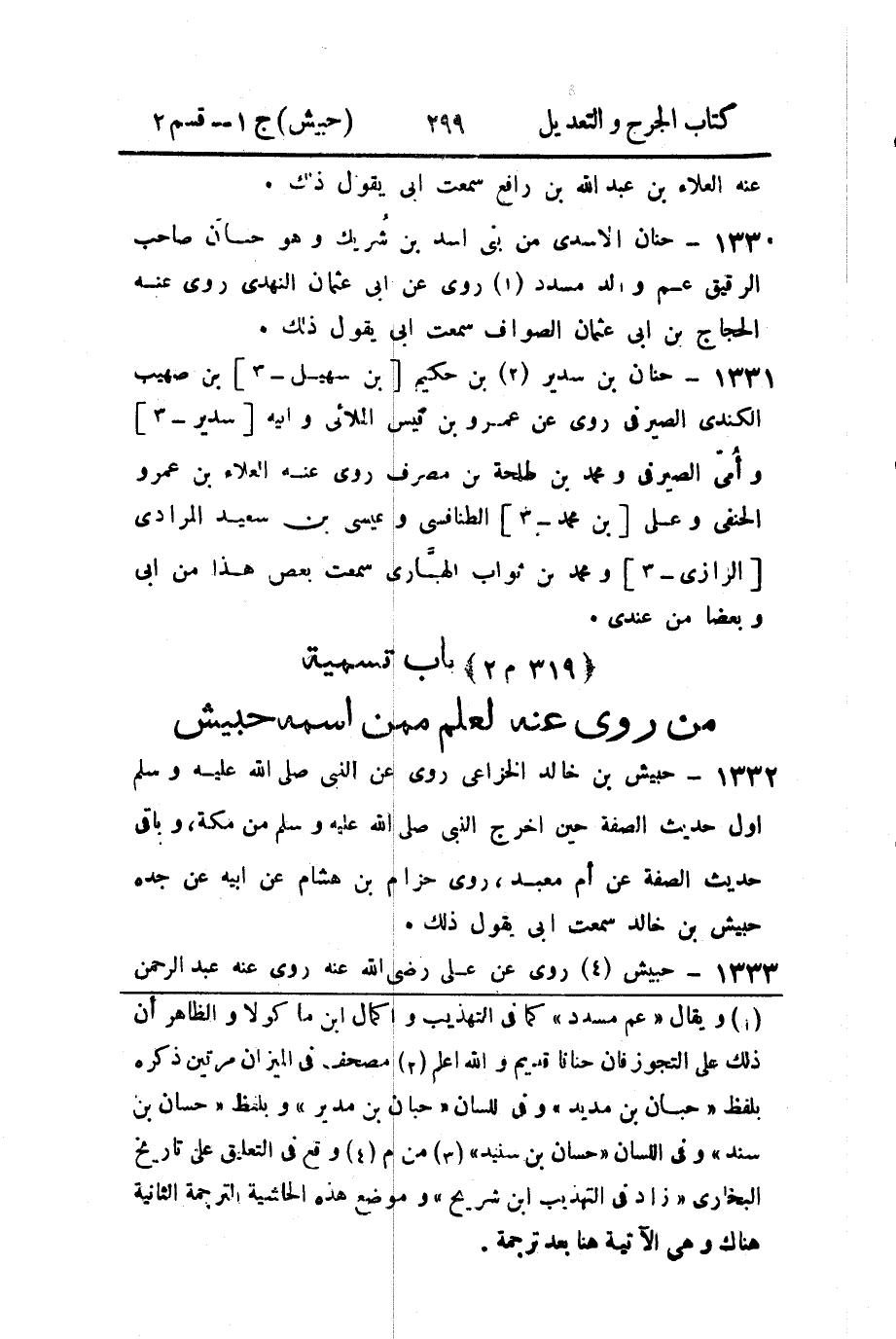 1330- حنان الأَسدي مِن بَني أسد بن شَريك، وهو حنان صاحب الرقيق عم والد مسدد.