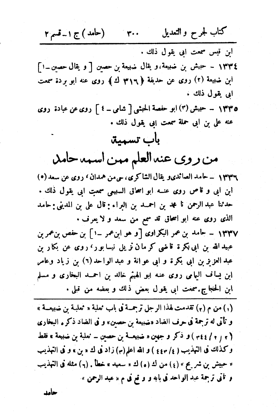 - باب تسمية من رُوي عنه العلم، ممن اسمه حامد.