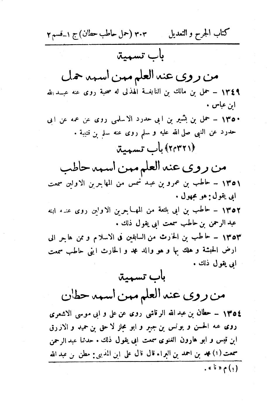 - باب تسمية من رُوي عنه العلم، ممن اسمه حطان.