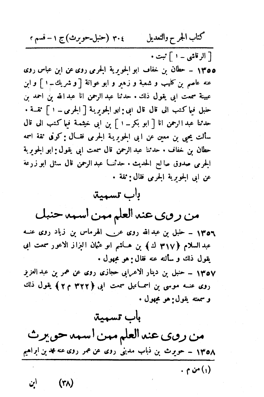 - باب تسمية من رُوي عنه العلم، ممن اسمه حويرث.