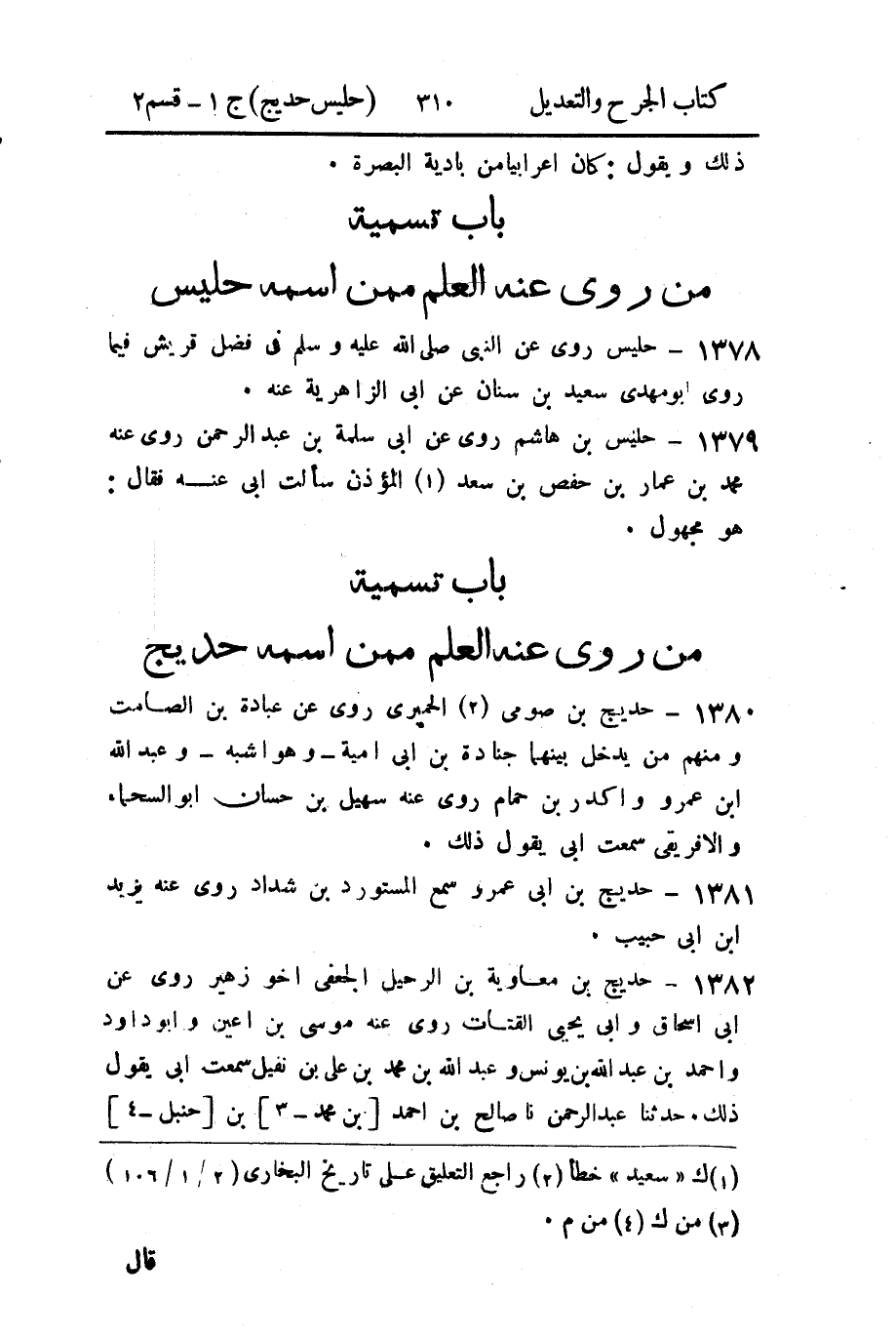 - باب تسمية من رُوي عنه العلم، ممن اسمه حديج.