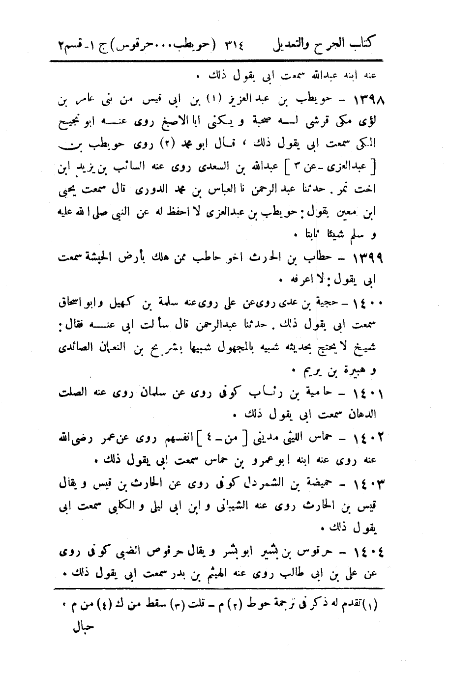 1398- حويطب بن عَبد العزيز بن أَبي قيس مِن بَني عامر بن لؤي مَكّيٌّ قرشي.