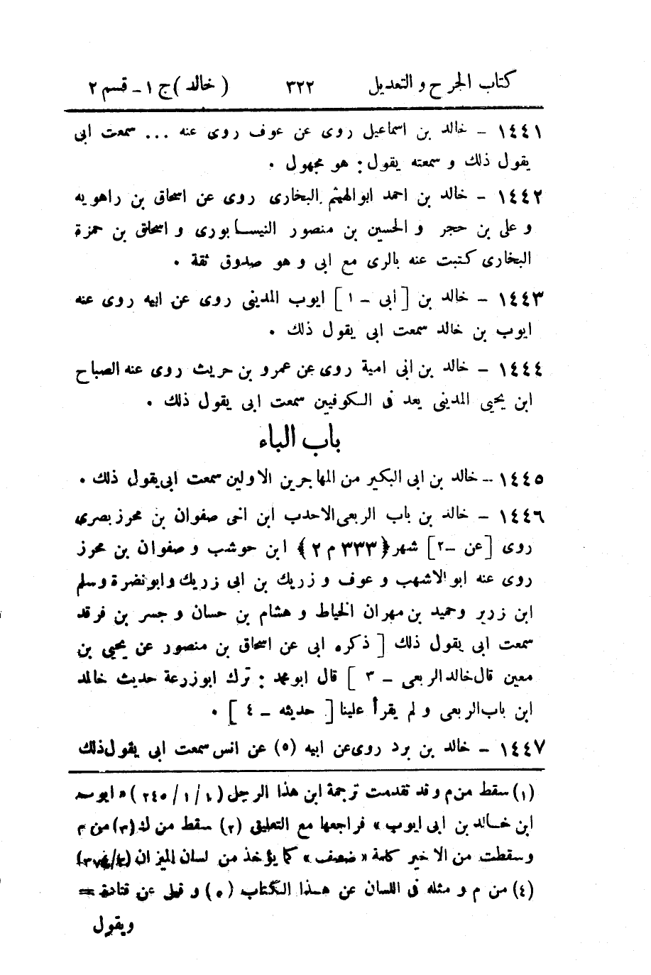 1446- خالد بن باب الرَّبَعي الأحدب ابن أَخي صفوان بن محرز، بَصريٌّ.