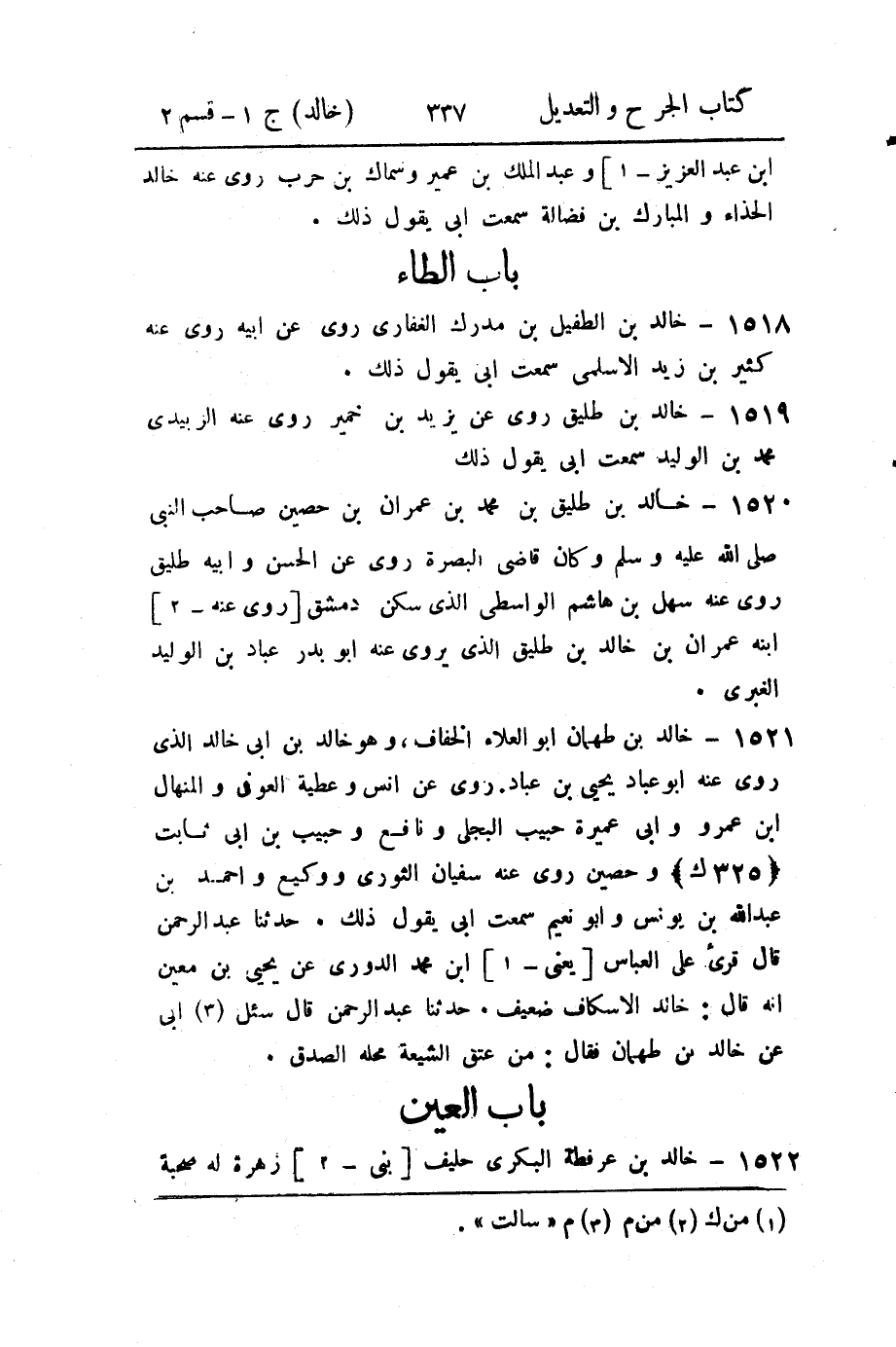 1520- خالد بن طليق بن محمد بن عِمران بن حصين، صاحب النَّبي صَلى الله عَليه وسَلم، وكان قاضي البصرة.