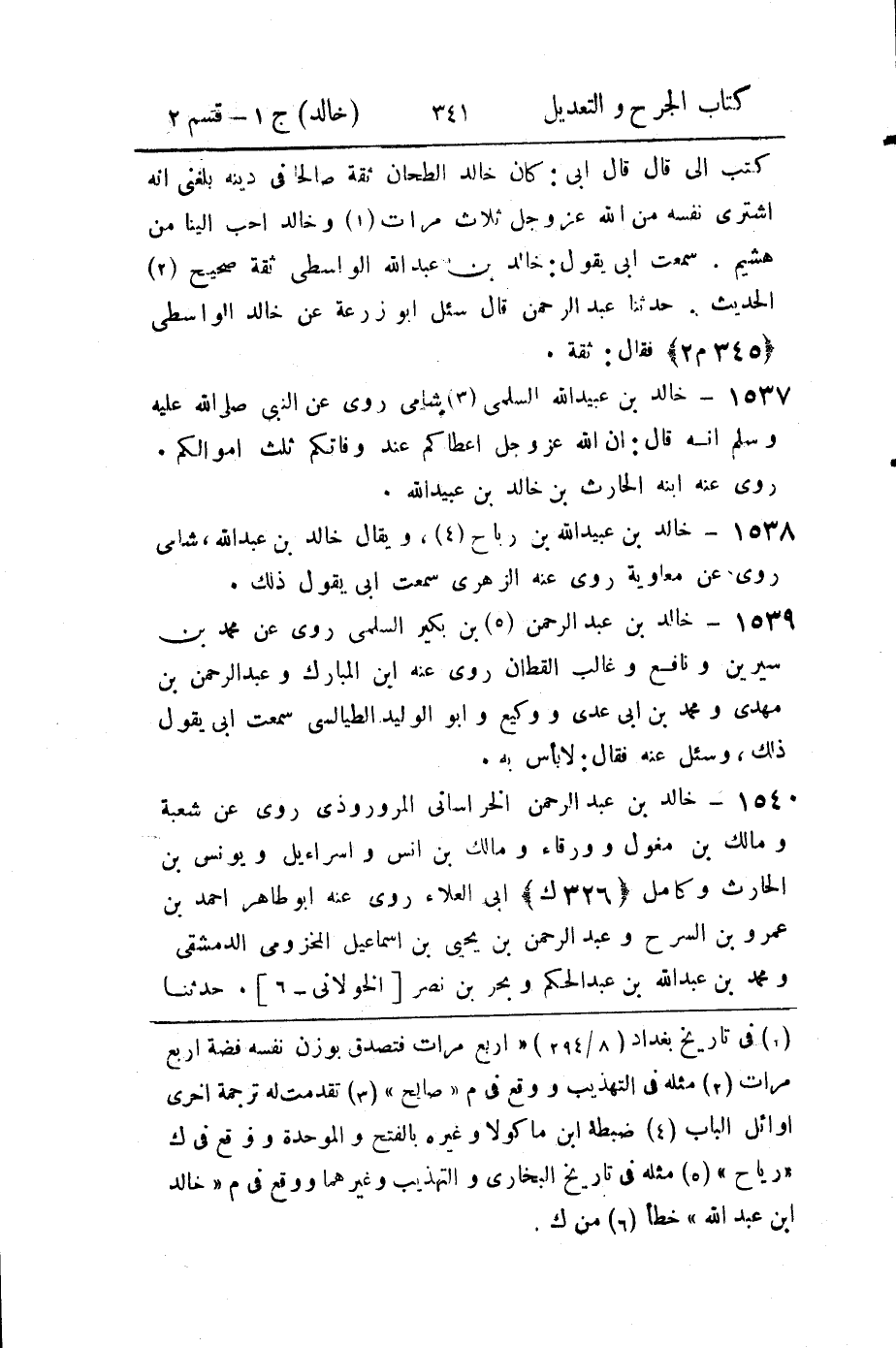 1537- خالد بن عُبَيد الله السلمي شامي.