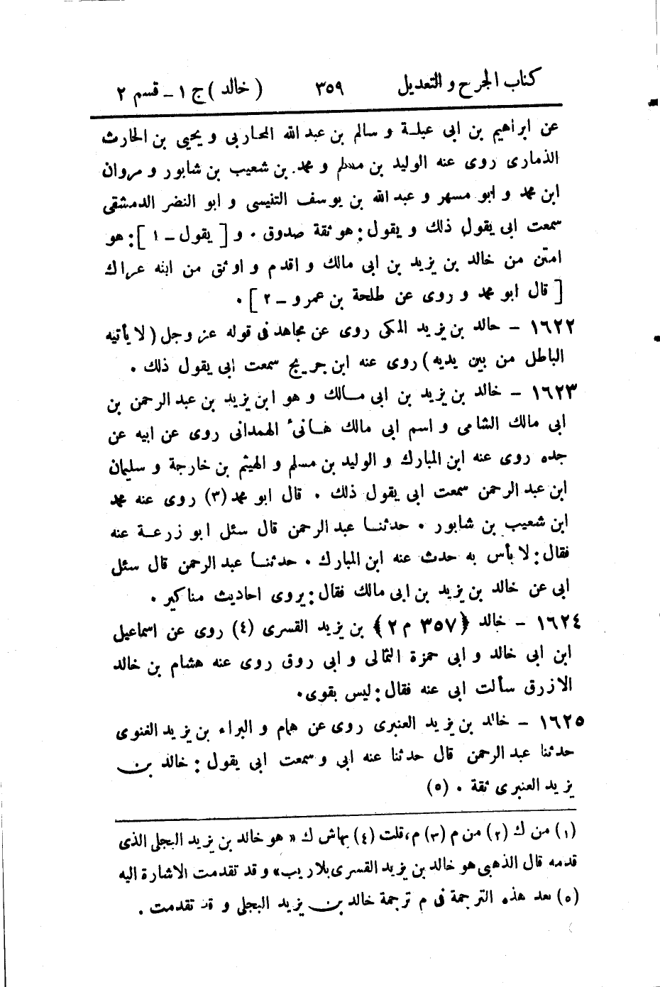 1623- خالد بن يزيد بن أَبي مالك، وهو ابن يزيد بن عَبد الرَّحمن بن أَبي مالك الشامي، واسم أبي مالك هانئ الهمداني.