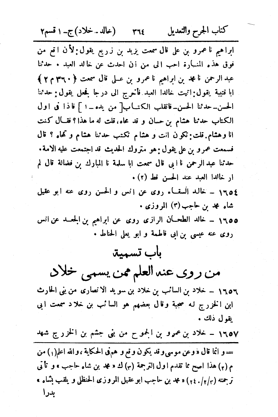 - باب تسمية من رُوي عنه العلم مِمَّن يُسَمَّى خَلاَّد.