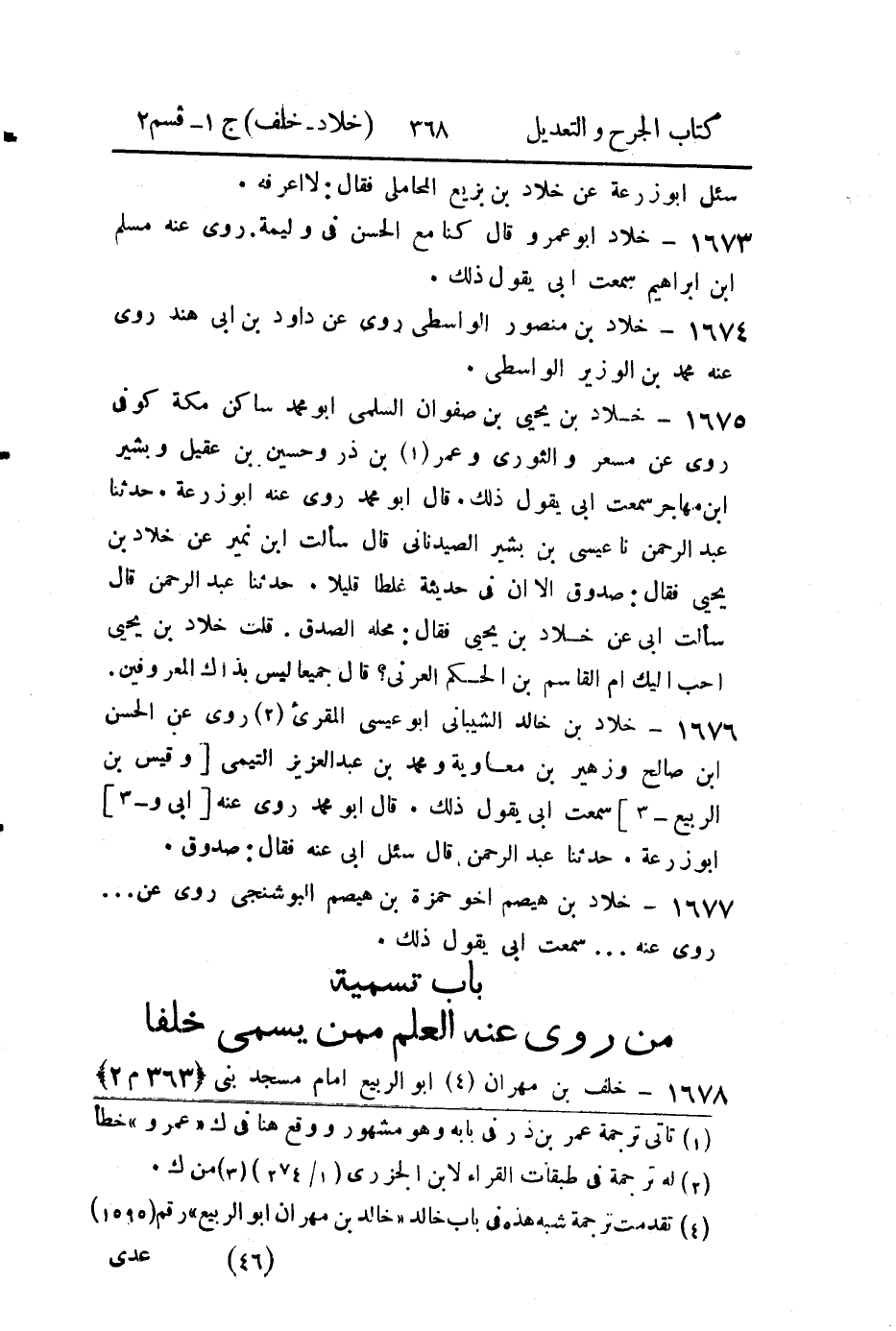 - باب تسمية من رُوي عنه العلم، مِمَّن يُسَمَّى خلفا.