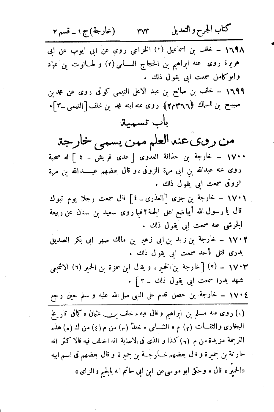 - باب تسمية من رُوي عنه العلم مِمَّن يُسَمَّى خارجة.