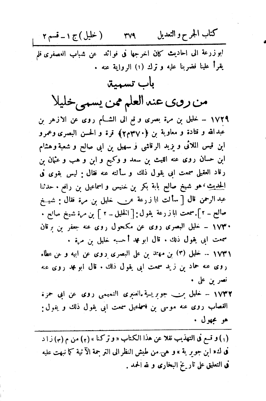 - باب تسمية من رُوي عنه العلم مِمَّن يُسَمَّى خليلا.