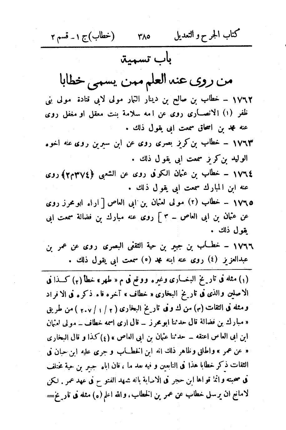 - باب تسمية من رُوي عنه العلم، مِمَّن يُسَمَّى خطابا.