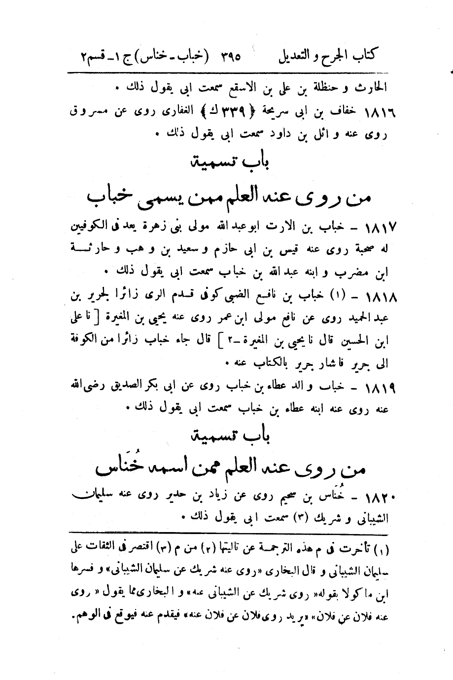 - باب تسمية من رُوي عنه العلم، ممن اسمه خناس.