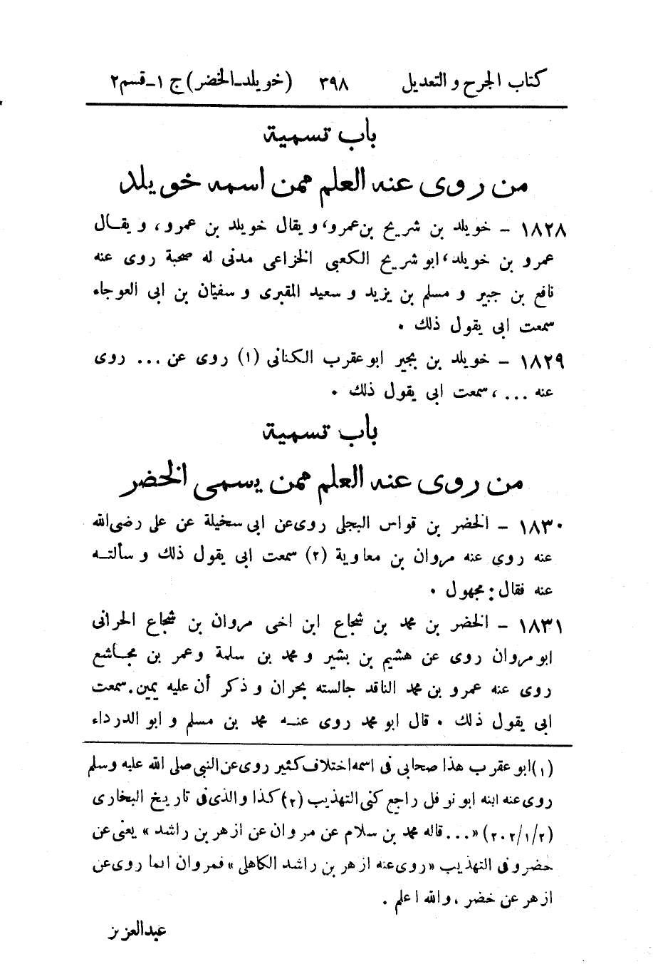 - باب تسمية من رُوي عنه العلم، مِمَّن يُسَمَّى الخضر.