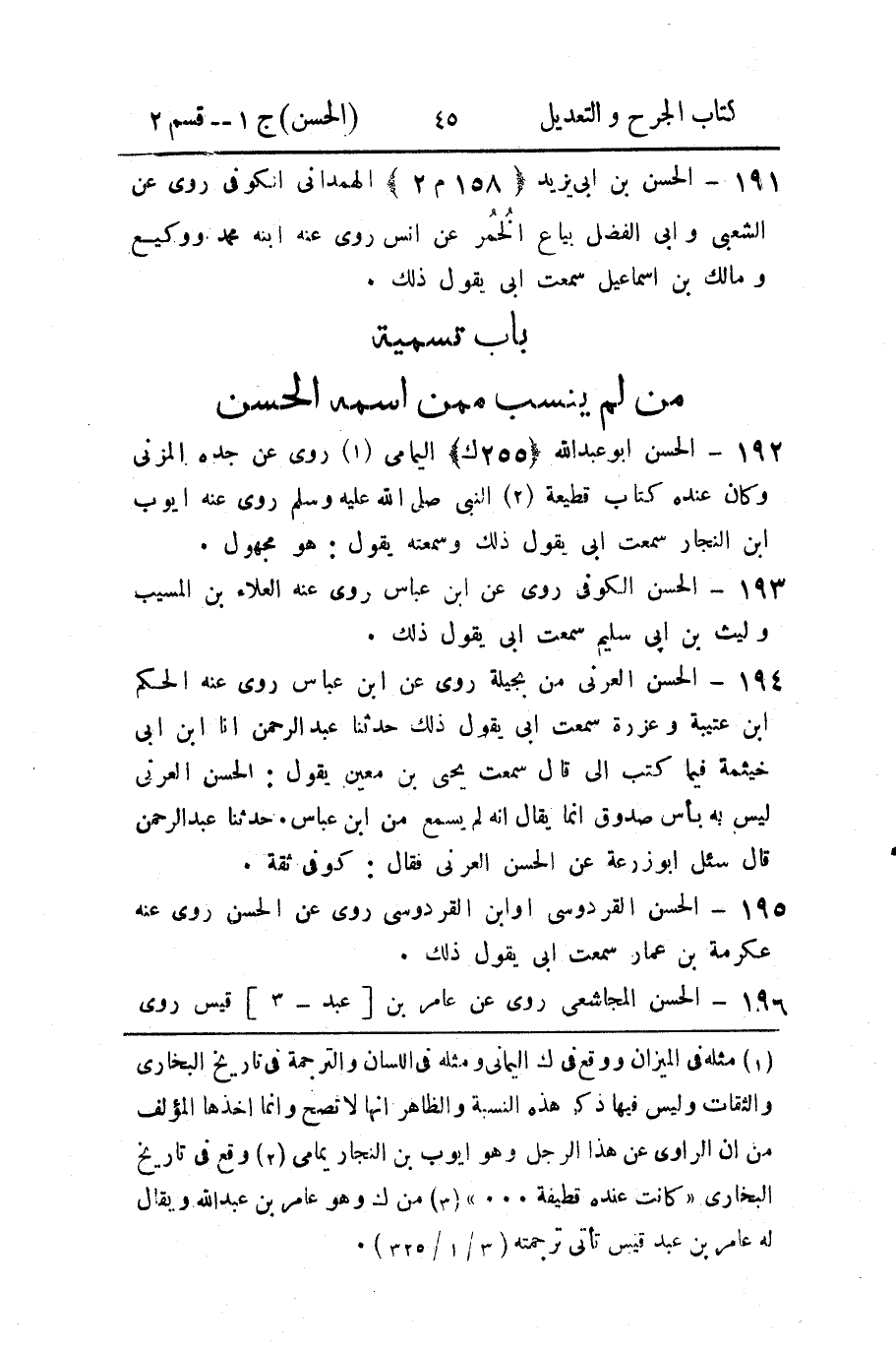 - باب تسمية من لم ينسب، ممن اسمه الحسن.