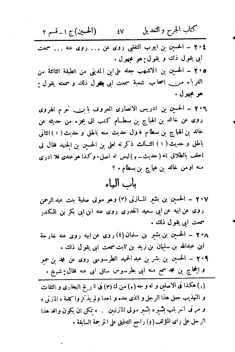 207- الحسين بن بشير المازني، وهو مولى صفية بنت عَبد الرَّحمن.