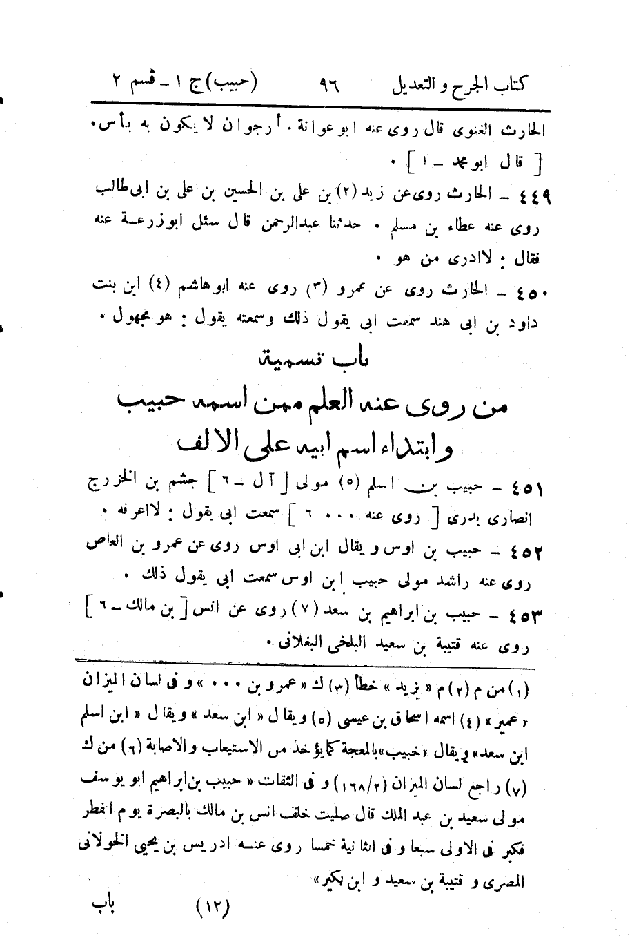 - باب تسمية من رُوي عنه العلم، ممن اسمه حبيب، وابتداء اسم أَبيه على الألف.