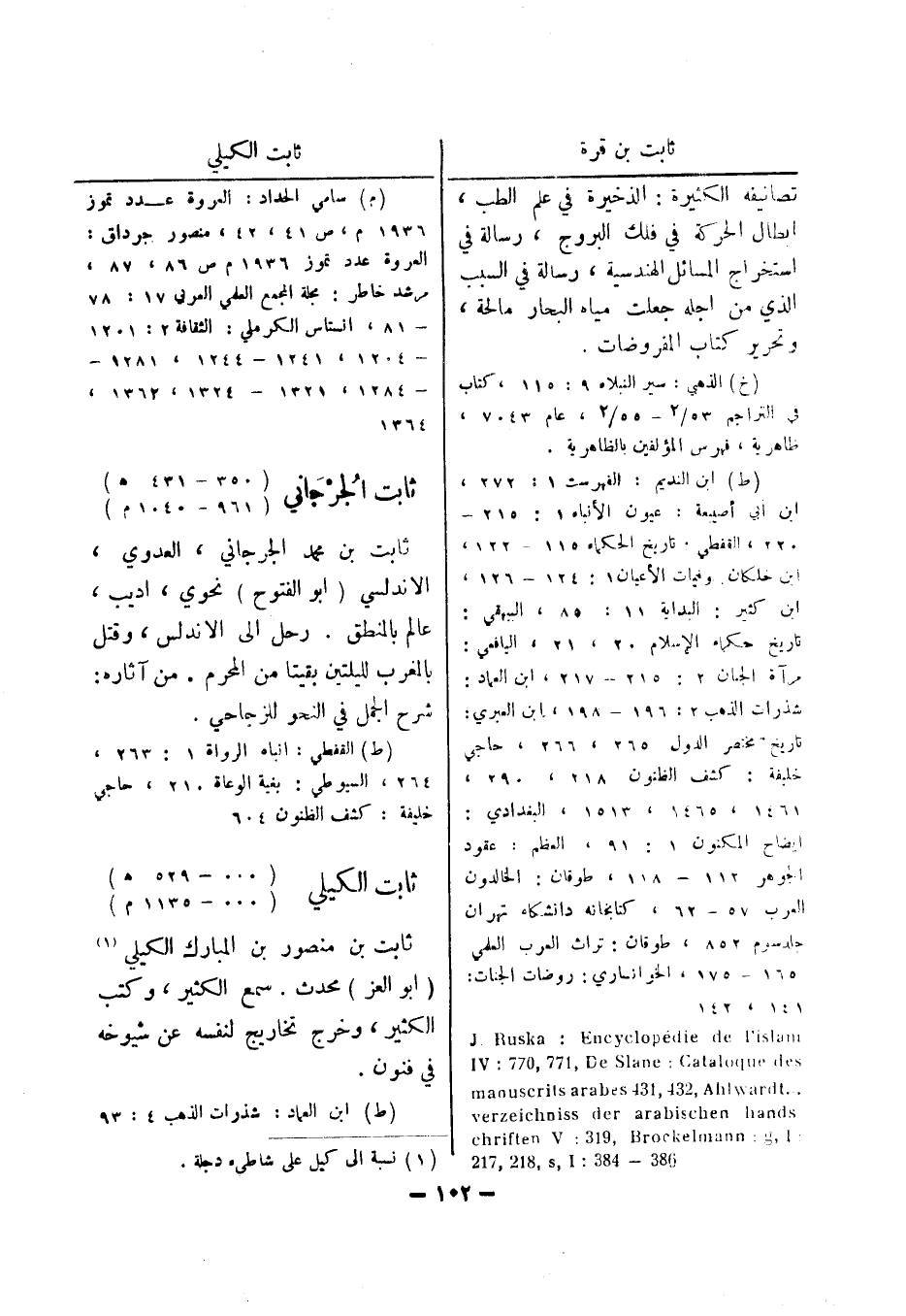 manuscrits arabes 134 , 234 , Ahlwardt Verzeichniss der arabischen hands: chriften V: 913 , Brockelmann: g , I 386 - 384: 712 , 812 , s , I (م) سامي الحداد: العروة عدد تموز 1936 م، ص 41، 42، منصور جرداق: