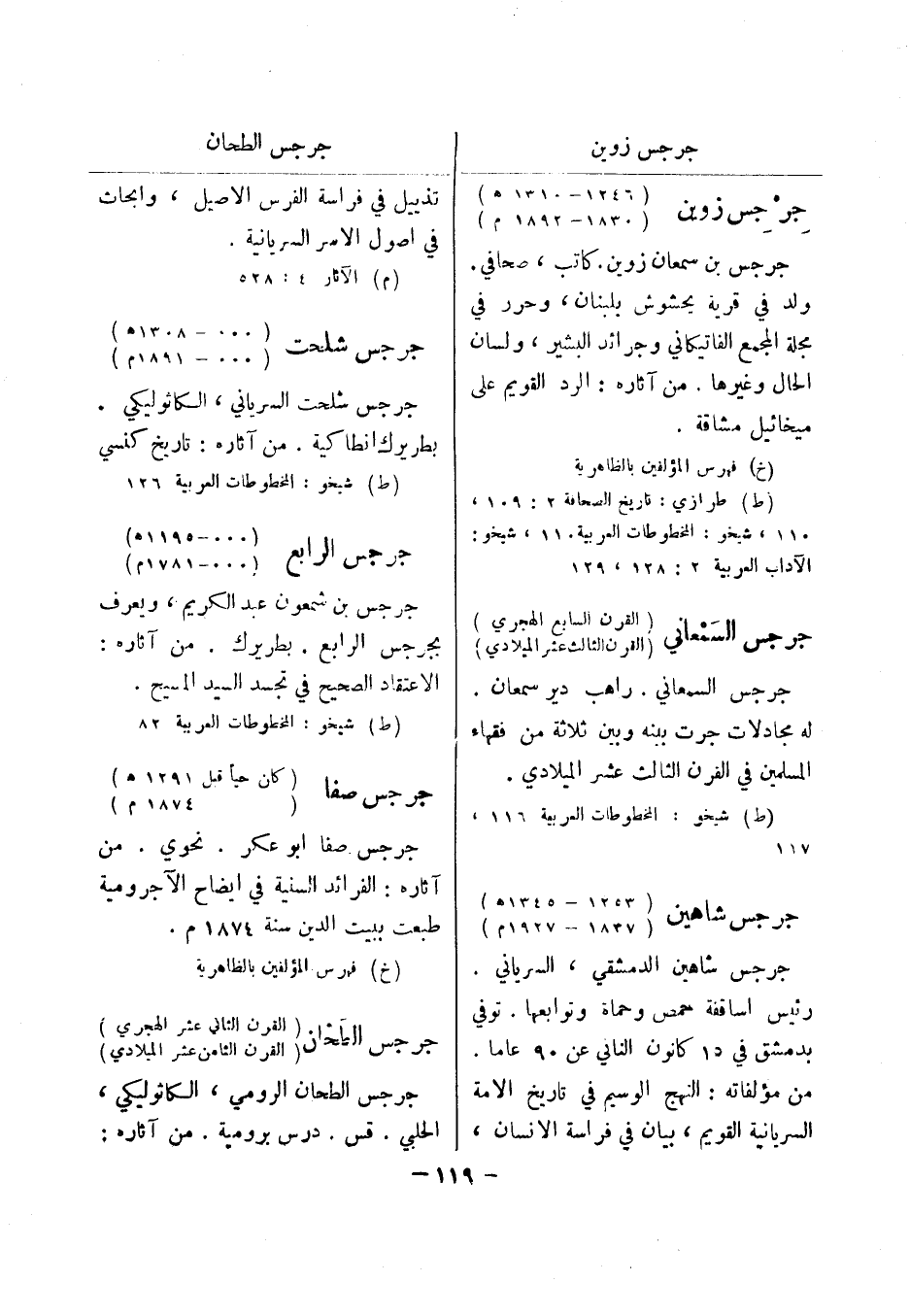 (خ) فهرس المؤلفين بالظاهرية (ط) طرازي: تاريخ الصحافة 2: 109، 110، شيخو: المخطوطات العربية 110، شيخو: الآداب العربية 2: 128، 129 جرجس السمعاني (القرن السابع الهجري)